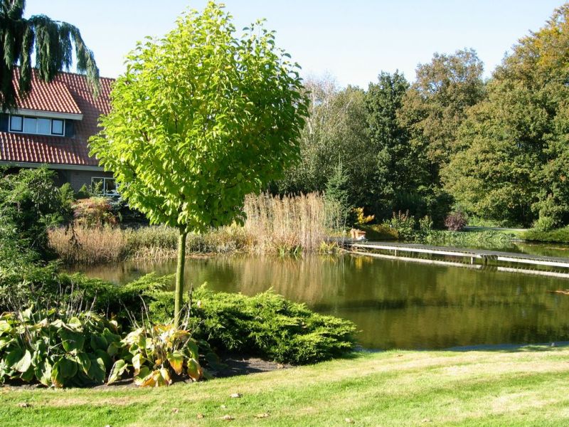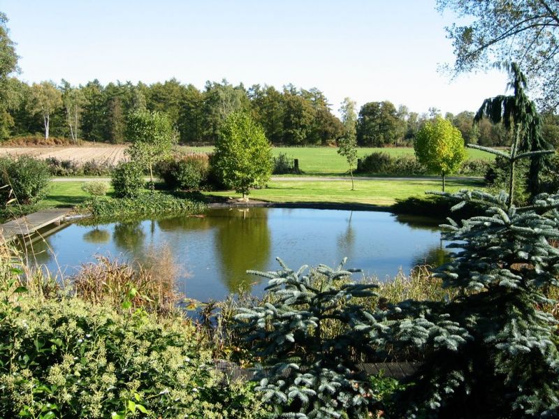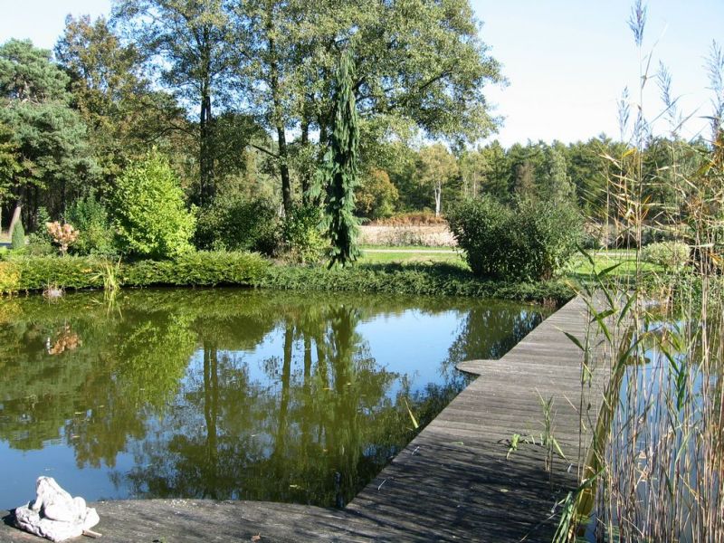Deze vijver ligt in een bosrijke omgeving en is ruim bemeten. Naast een aangename heeft deze ook een nuttige bestemming: voor de bedrijfswoning dient deze als blusvijver. Daardoor was deze fiscaal aftrekbaar.